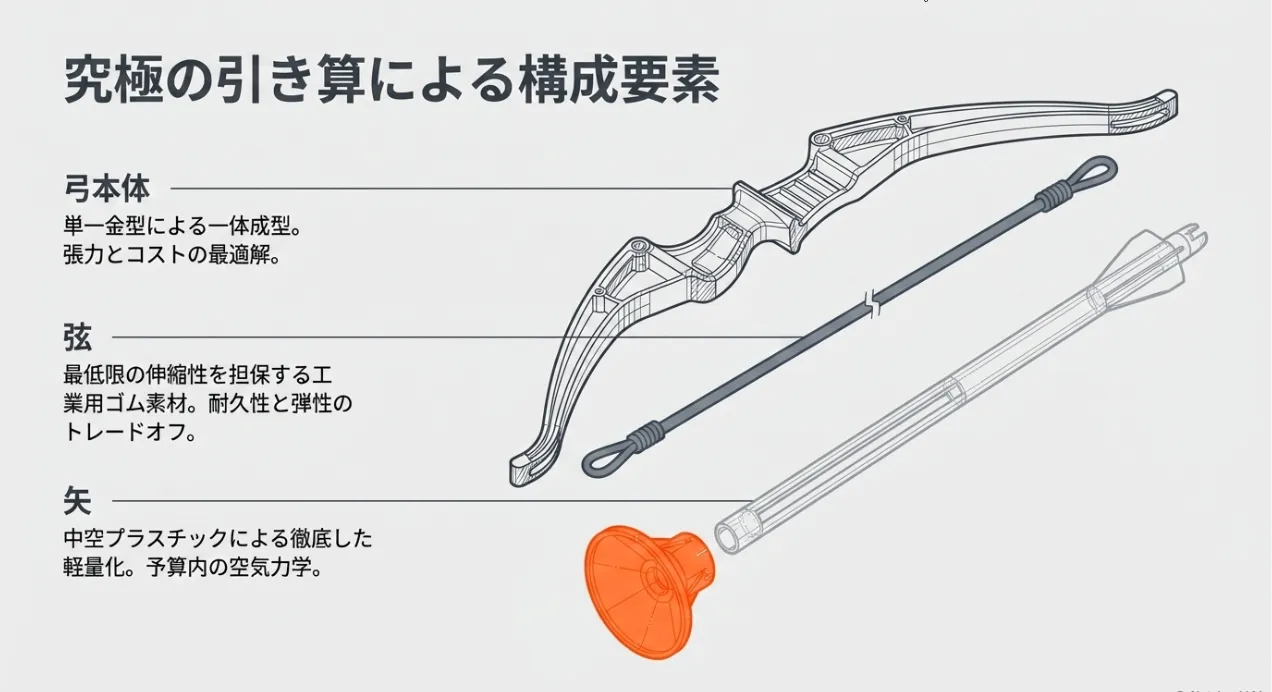 | 物理ハック(DIY) | ハンガー弓 + 凧糸 | 既製品を超える断面二次モーメントと、弦の低伸縮によるエネルギー直結。 |