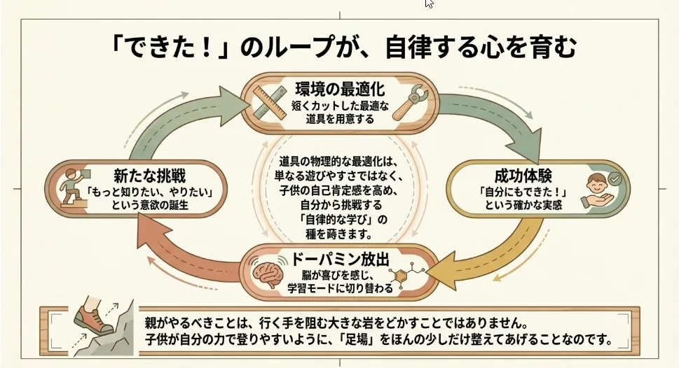 もし今、お手元に長すぎて使われていない100均のハンドがあるなら、ぜひ今日から「短く」することを検討してみてください。それは、子供にとっての「扱いづらいおもちゃ」が、未来の「確かな指先の知能」へと変わる魔法のステップになります。2026年も、親子の試行錯誤が最高の学びになりますように。あなたの育児という挑戦を、私は心から応援しています!