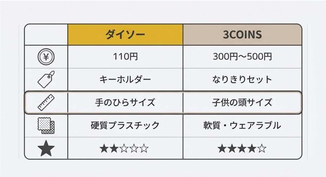 - ショップ比較:ダイソーやセリアで買える「被るヘルメット」と「ぬい用」の違い。