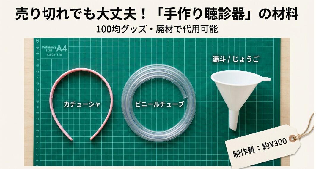 • 代用案の裏技:お店にない時は、100均日用品で「本当に心音が聞こえる」本格DIY聴診器を!