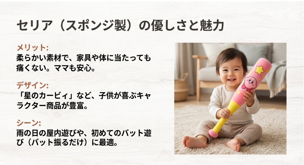 | セリア | スポンジバット・野球セット | (店舗による) | おもちゃ・季節物 | 2歳〜5歳 | ★★★★☆ |