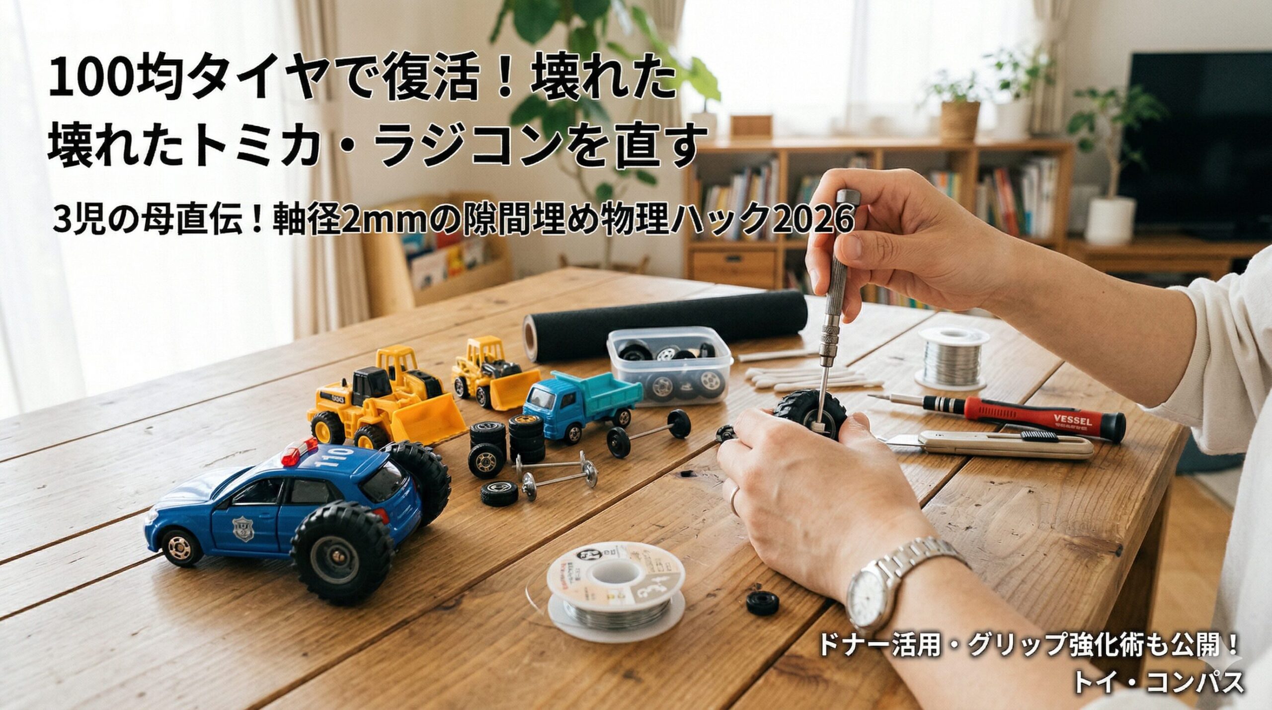 「お気に入りのトミカやラジコンのタイヤが壊れてしまった…」そんな時、すぐに捨ててしまうのはもったいないですよね。2026年現在、100円均一ショップで手に入るタイヤパーツや車玩具は、単なる遊び道具の枠を超え、立派な「補修用ドナー」として非常に高いポテンシャルを持っています。