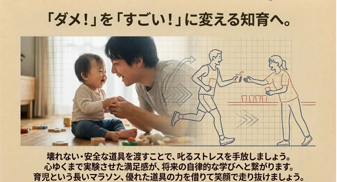 もちろん、どうしても「本物がいい!」と泣かれる日もあるかもしれません。そんな時は「今日は研究熱心だね」と一呼吸置いて、また明日から楽しい道具で一緒に遊んでみてください。今この瞬間の「壊す体験」が、いつか「創る力」に変わる日が必ず来ます。
