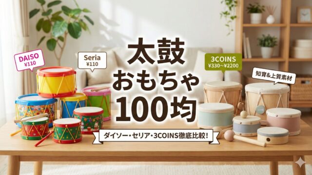 こんにちは!3児の母ノアです。「太鼓 おもちゃ 100均」をお探しの方へ、ダイソーやセリアの最新在庫状況や安全な遊び方をまとめました。実はお店で見当たらないのには理由があるんです。でも大丈夫!「太鼓 おもちゃ 100均」がない時の代用案や3COINSの魅力まで、福井での育児体験を込めて本音で解説します。