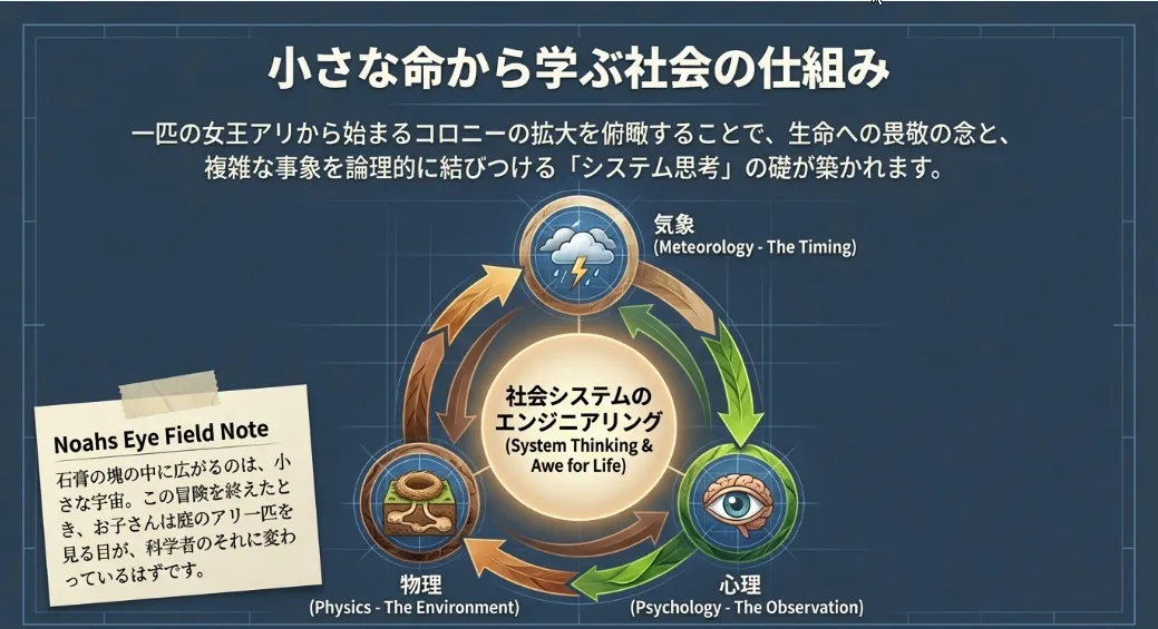 一匹の女王から始まる社会(コロニー)の拡大を観察することは、将来的なシステム思考や生態学への理解の礎になります。親が答えを教えるのではなく、子供が自ら仮説を立て、環境を調整し、結果を待つ。このプロセスこそが、自律的な学習姿勢を育む「本物の学び」です。