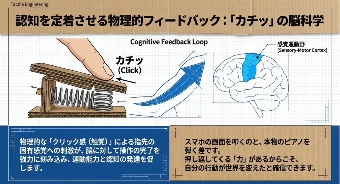 「カチッ」とした操作感の重要性をさらに深掘り。指先の発達が脳をどう育むのか、モンテッソーリの視点から解説します。