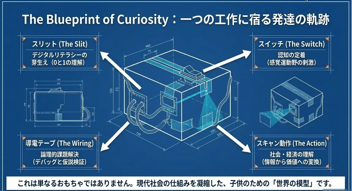 100均で買うのが一番早くて安上がりかもしれません。でも、あえて不器用に回路を繋ぎ、光のスリットを調整し、指先の感触を確かめながら作ったスキャナーには、子供の「なぜ?」を解決する力が宿っています。その「仕組みを解き明かした」という自信は、将来どんな高度なテクノロジーに出会っても、それを恐れず、理解しようとする強靭な知性の土台となるはずです。