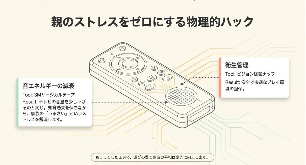 テープ一枚で音の問題が解決すれば、ママも笑顔で見守れる。この「心の余裕」が知育には一番大切なんです。