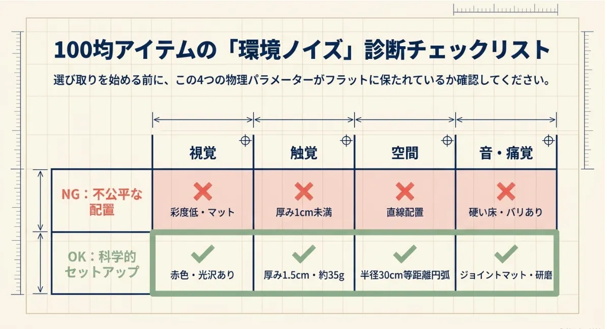 物理的な公平性と安全性を兼ね備えた、2026年推奨のアイテムをまとめました。100均で揃える際の基準や、調整が必要なポイントを整理しています。