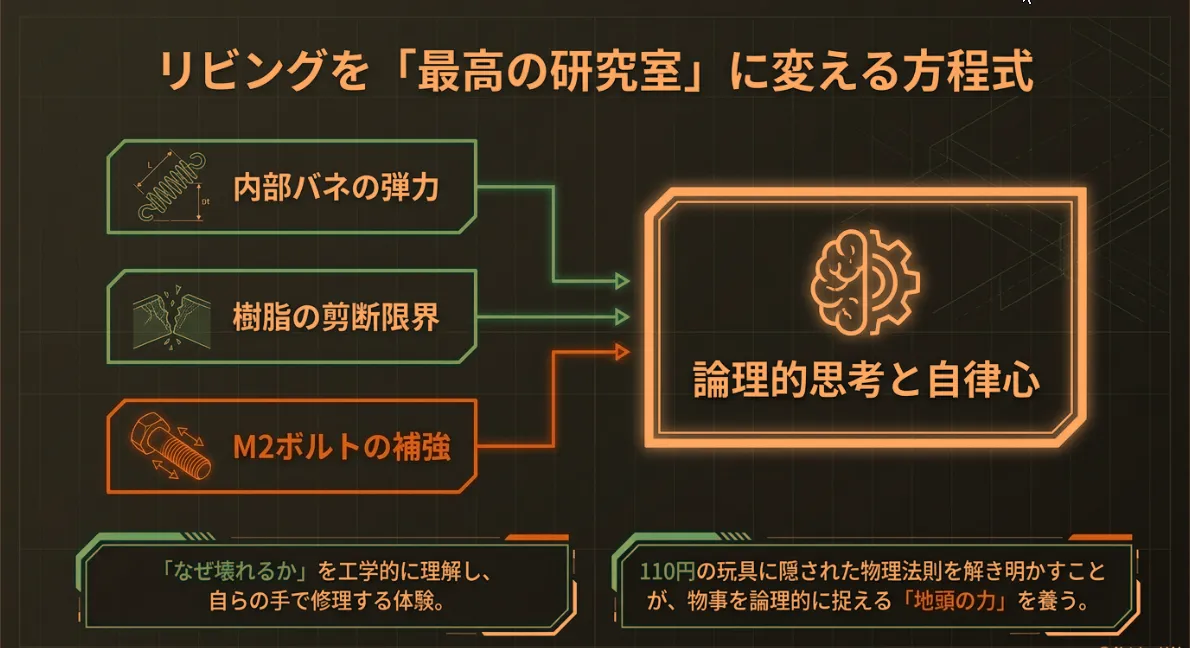 「壊れたから捨てる」のではなく、「なぜこの荷重で折れたのか」「どうすれば軸の摩耗を抑えられるか」という視点を持つこと。それこそが、2026年の今、私たちが100均おもちゃから学べる最高に贅沢な遊び方ではないでしょうか。