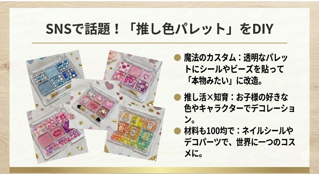 最近のInstagramやTikTokでは、この「お化粧ごっこ おもちゃ 100均」をさらに可愛くアレンジするのが大流行していますね。