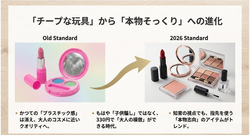 でも今は違います。棚に並ぶ「お化粧ごっこ おもちゃ 100均」のクオリティを眺めていると、本業のデータ分析の血が騒ぐほど、その進化のスピードに驚かされるばかりです。