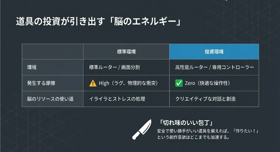 特にルーターの買い替えは、目に見えて子供たちの表情が変わるほどの効果があります。ラグという「技術的なストレス」を取り除いてあげるだけで、無駄な喧嘩が減り、驚くほどクリエイティブな対話が生まれるようになりますよ。