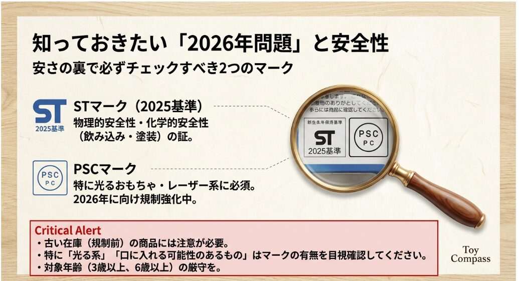 2026年の今、私たちが意識しなければならないのは、ST2025規格と「子供PSCマーク」の存在です。