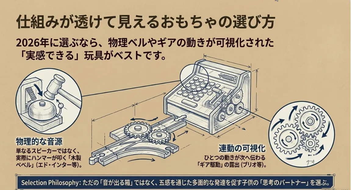 「なぜ音が鳴るのか」という仕組みが目に見えるおもちゃは、子供の論理的な思考を自然に引き出します。最新の2026年でも通用する、アナログの知育的価値を再発見しましょう。