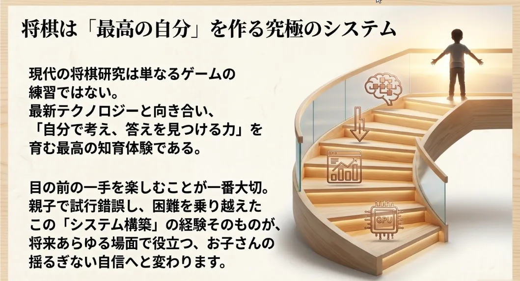 私の子供たちも、一つのことに没頭する時期を経て、自分で課題を見つける力がついたと感じています。将棋の研究は、まさに「自分で考えて、答えを見つける」という自律学習の練習台にぴったりなんですよ。