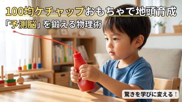 100均のケチャップおもちゃは、予測脳を鍛える最高の実験装置!セリアやダイソーのケチャップおもちゃを物理学と脳科学で徹底検証しました。3児を塾なしで難関校へ導いた母ノアが、100均おもちゃで地頭を育てる「驚き」の活用術を2026年最新版で解説。親子で楽しみながら「科学する心」を育みましょう。