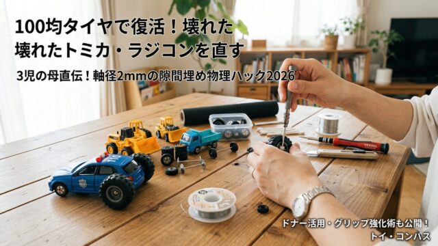 お気に入りの「100均 タイヤ おもちゃ」を修理部品として活用しませんか?3児の母が軸径2.0mmの壁を突破する物理的な加工術やグリップ強化の裏技を2026年最新版で徹底解説。トミカやラジコンを「100均 タイヤ おもちゃ」で復活させる具体的な手順がわかるので、捨てる前にぜひ試してくださいね。